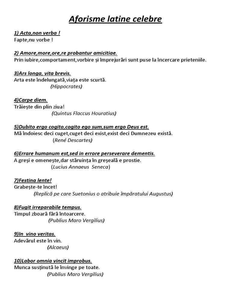 Aforisme Celebre In Limba Latina