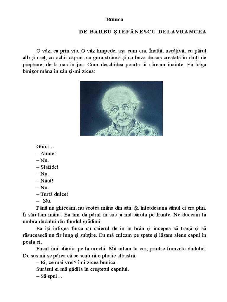 Bunica De Barbu ștefănescu Delavrancea Machete Didactice