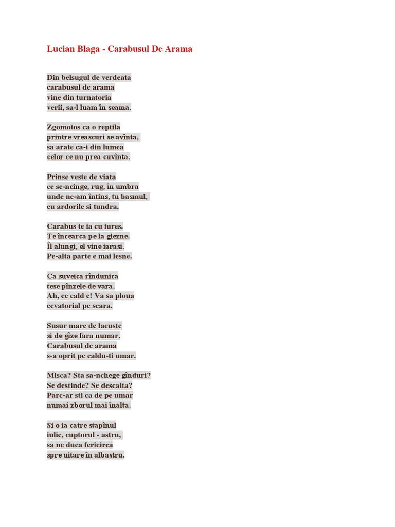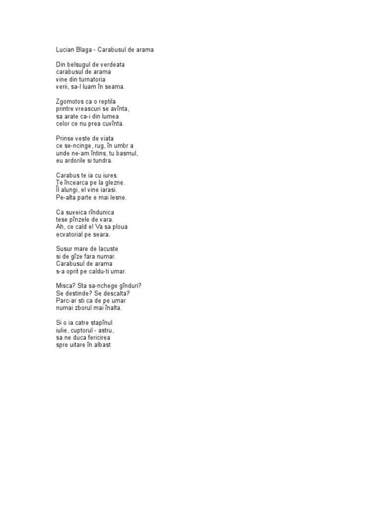 Lucian Blaga Poezii Carabusul De Arama
