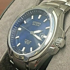 Citizen Eco Drive Titanium Sapphire Wr100 Gn 4w S E111 S078369 Blue Face Watchcharts
