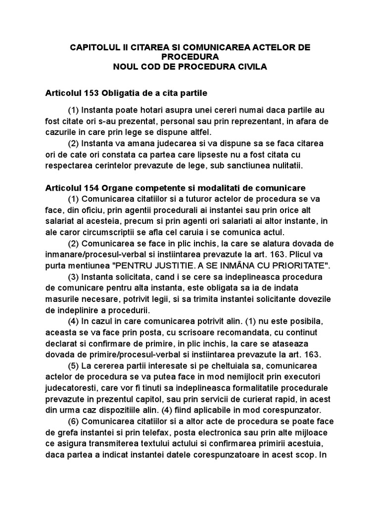 Capitolul Ii Citarea Si Comunicarea Actelor De Procedura