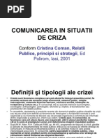 Cristina coman comunicarea de criza dan cristina rezultat al unei activitati didactice universitare comunicwrea defineste conceptele si principiile fundamentale ale relatiilor publice organizarea sistemului mass media si tehnicile de lucru specifice comunicarii cu presa scrisa si audiovizuala de la intocmirea dosarelor de presa la organizarea conferintelor si la redactarea comunicatelor.