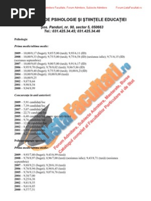 Facultatea De Psihologie Bucuresti Subiecte Admitere