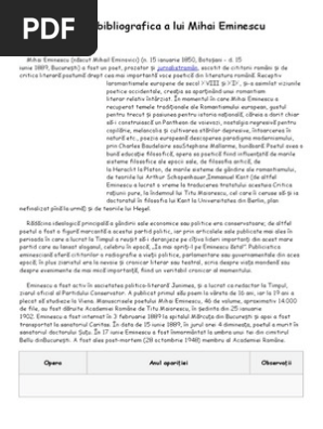 Fisa Biobibliografica A Lui Mihai Eminescu Docx Document