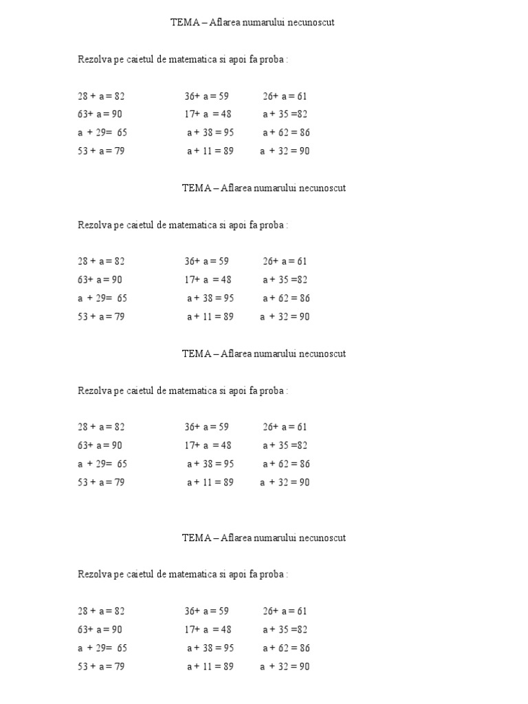 Fisa De Lucru Aflarea Numarului Necunoscut Clasa 4