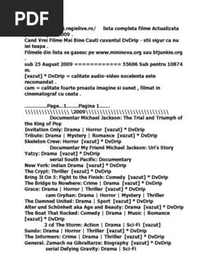 0 Lista Completa 1150 Filme Noi Azi Actualizata Pe 13 Sept Em Brie 2009 Symbox Codeblack Fxw Jocuri Games Filme Muzica Manele Guta Xxx Porno Horror Films Thriller Genre