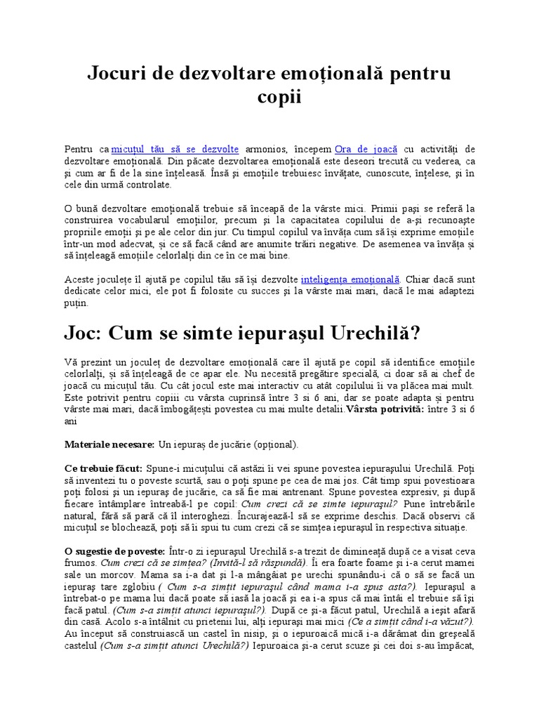 Jocuri De Dezvoltare Emotionala Pentru Copii