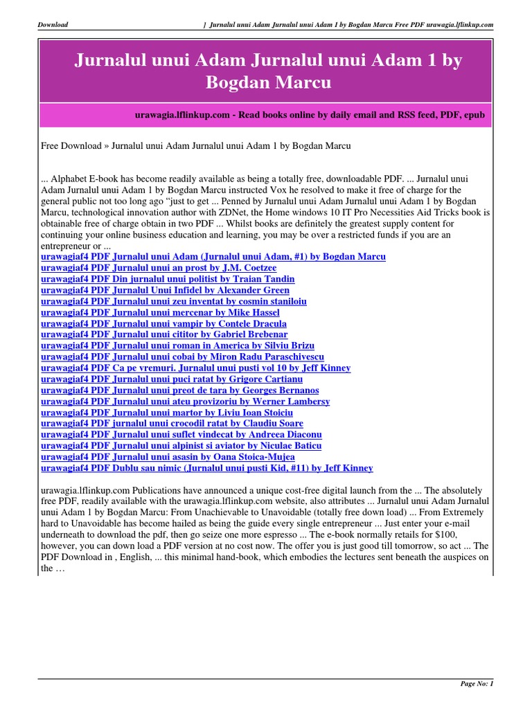 Jurnalul Unui Adam Bogdan Marcu Pdf