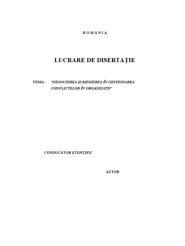 Negocierea Si Medierea In Gestionarea Conflictelor In Organizatii