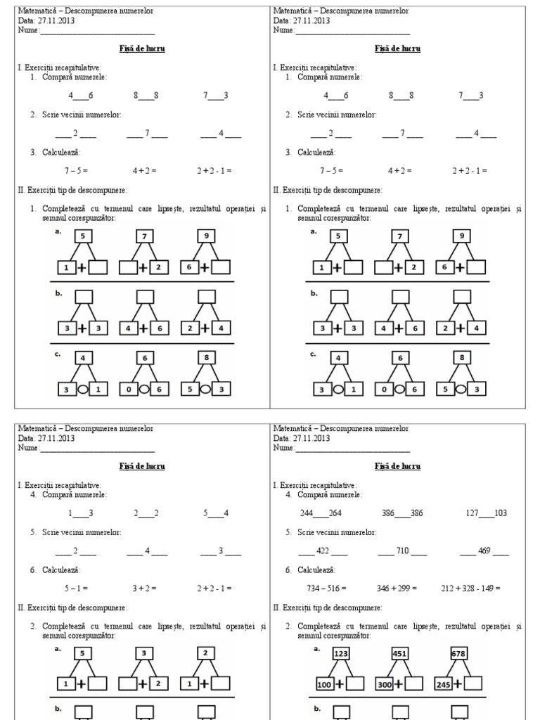 Fisa Mate Descompunerea Numerelor
