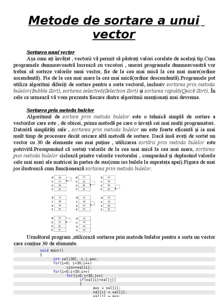 Metode De Sortare Vectori