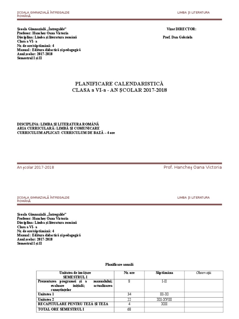 Planificare Calendaristică Integrată Clasa A Ii A 2017 2018 Victorioasa 25 09 2017