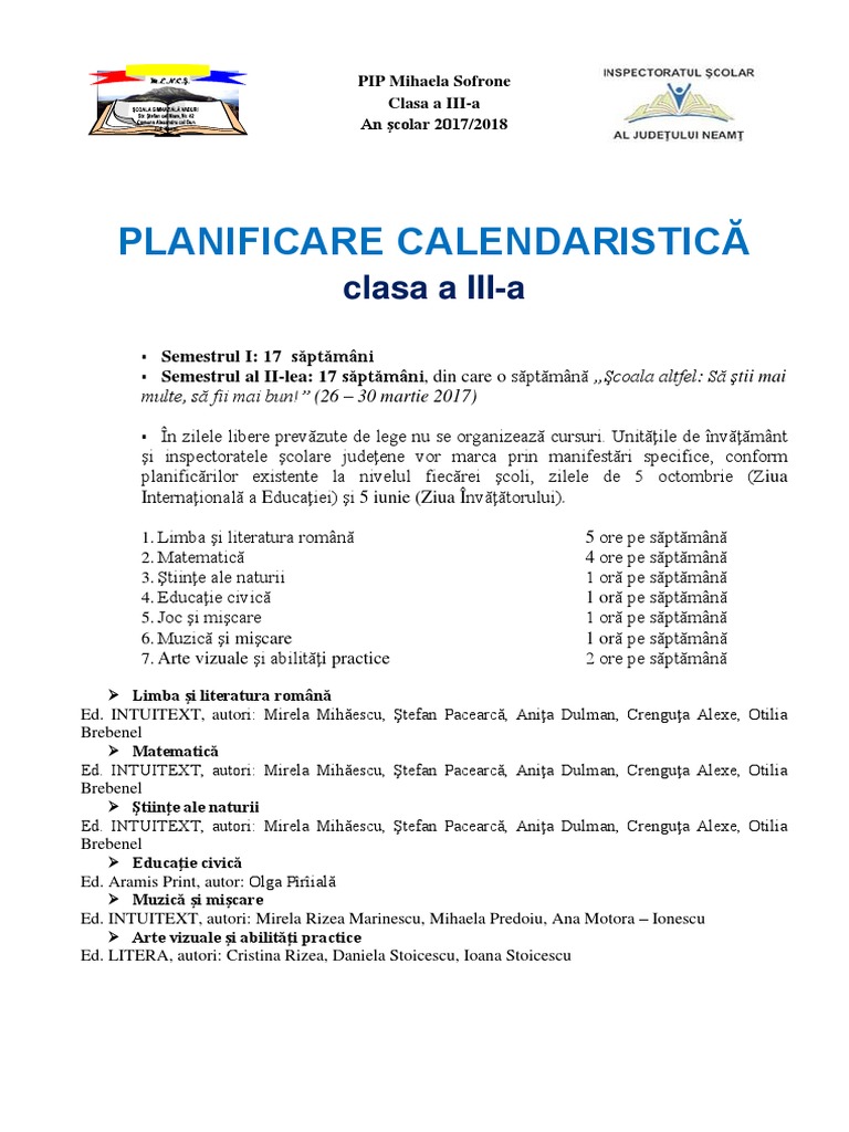 Planificare Clasa A Iii A Intuitext 2017 2018