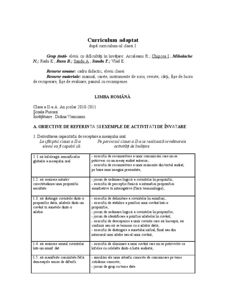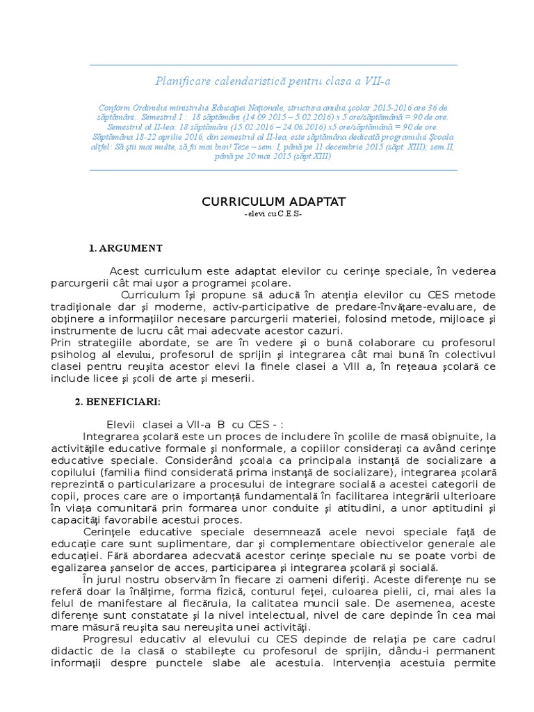 Doc Curriculum Adaptat Pentru Elevi Cu Ces Octavia Negrean Academia Edu