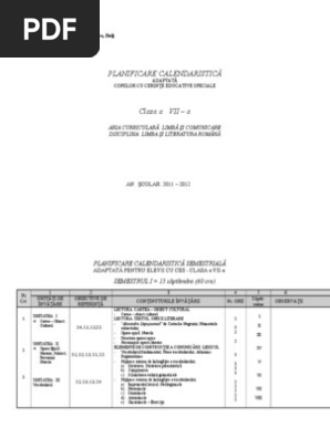Planificare Romana Clasa A 7 A Elevi Cu Ces