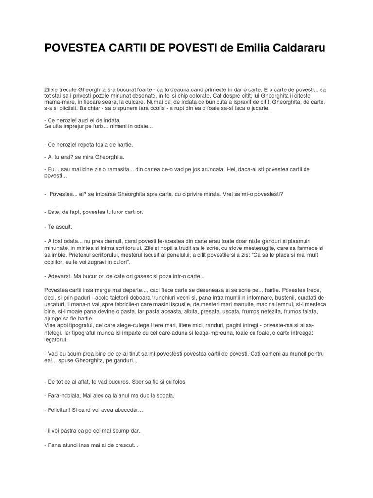Povestea Cartii De Povesti De Emilia Caldararu Ppt