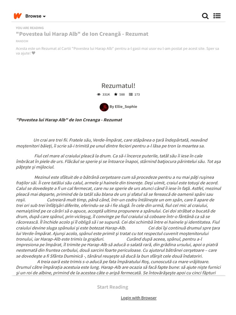 Povestea Lui Harap Alb De Ion Creangă Rezumat Rezumatul Wattpad