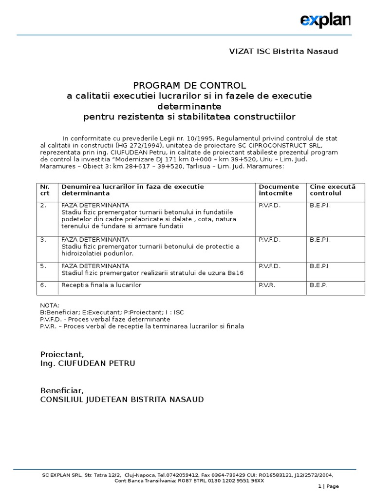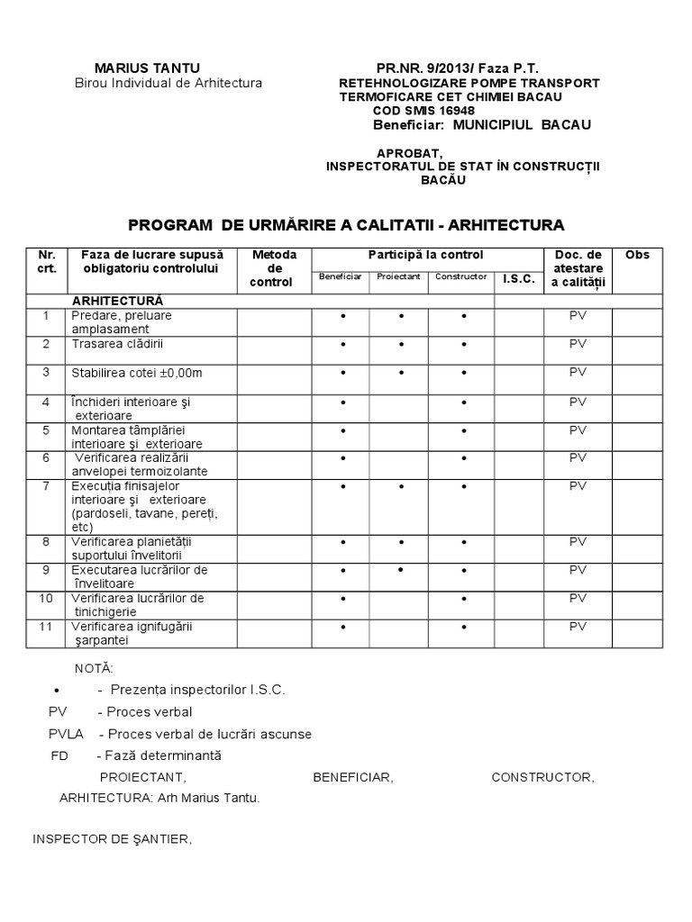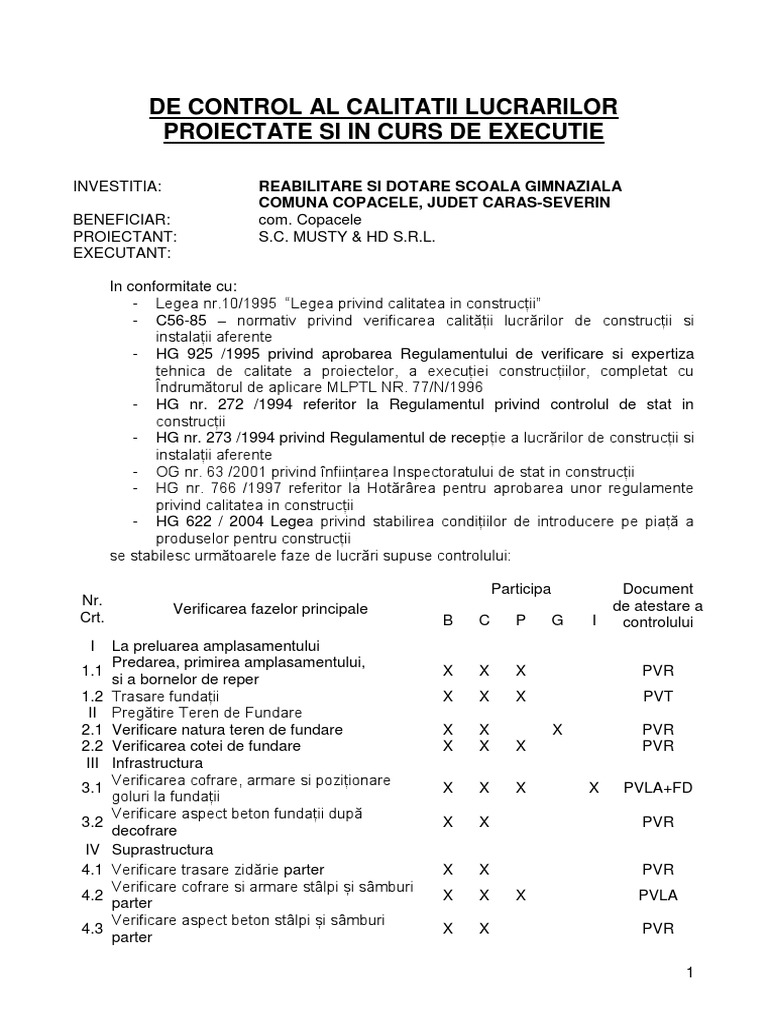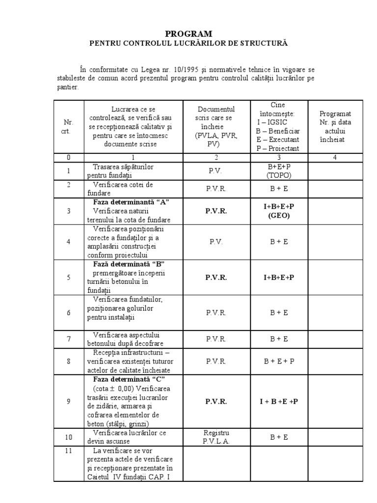 E Program Faze Determinante Program De Control Al Calitatii Lucrarilor De Constructii Pe Parcursul Executiei Faze Determinante Pentru Imobil De Locuin