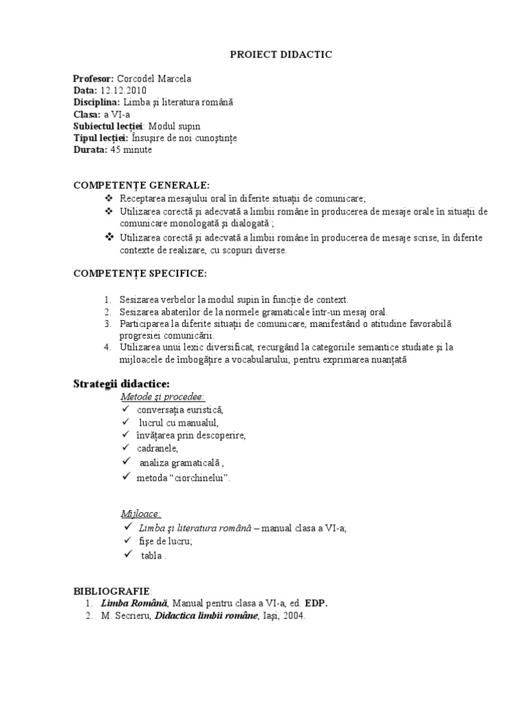 Proiect Didactic La Limba Romana