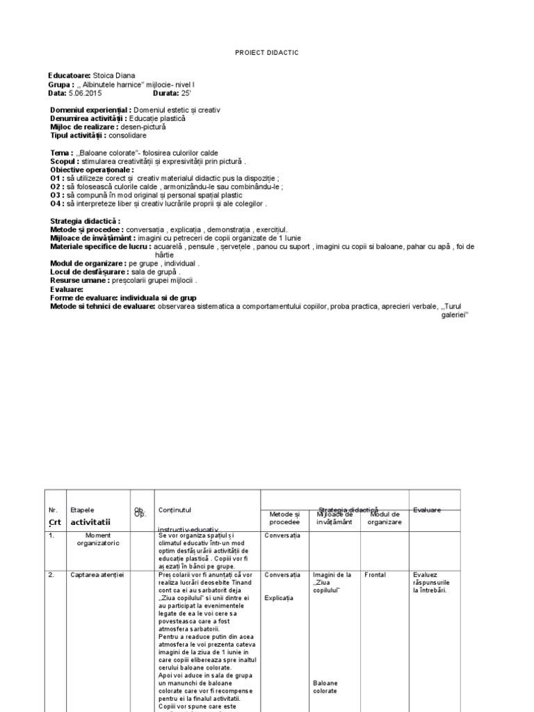 Proiect Didactic