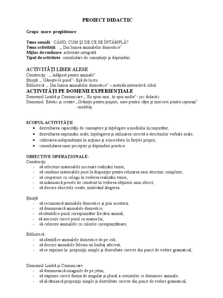 Proiect Didactic Animale