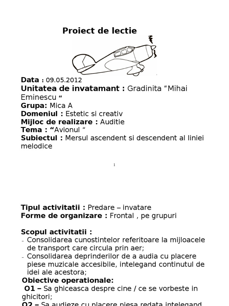 Proiect De Lectie Margulescu Adela Grupa Mica Avionul