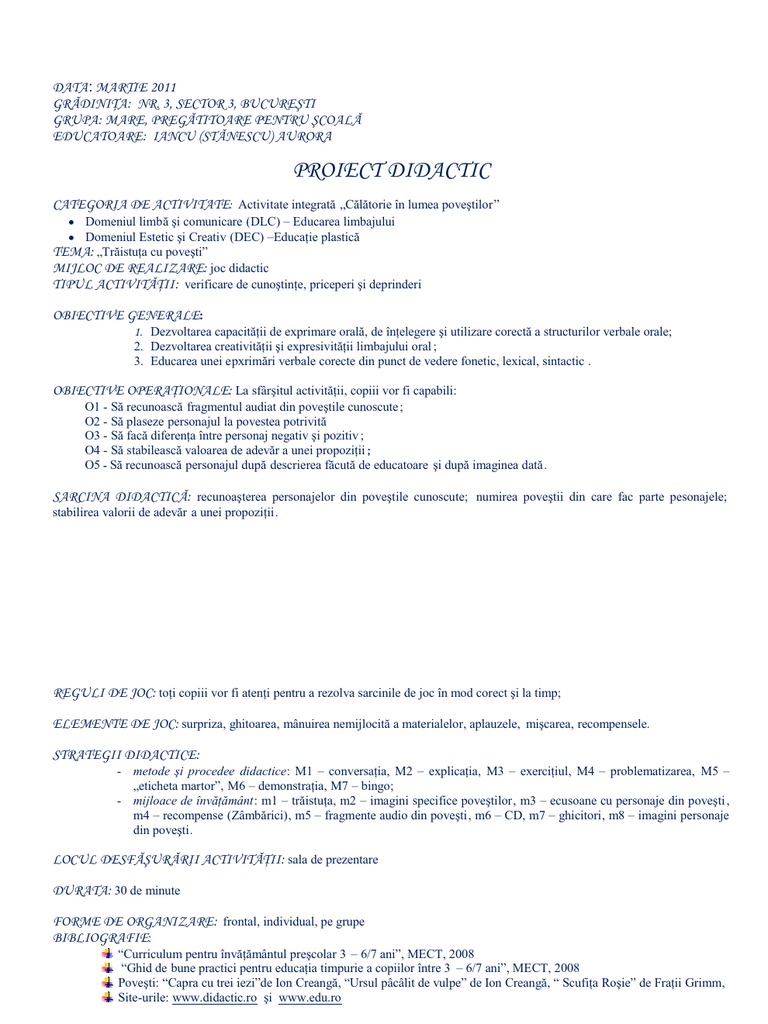 Sa identifice momentele zilei si sa denumeasca momentele importante ale zilei. Prima pagină învăţământ preşcolar domeniul limbă şi comunicare dlc lecţii educarea limbajului proiect didactic. Consolidare de cunostinte si deprinderi. Nivel i 3 5 ani proiect didactic grupa.