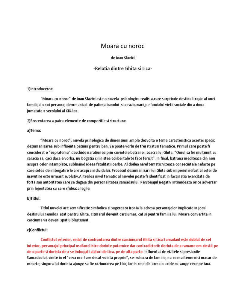 Doc Caracterizare Ghita Moara Cu Noroc De Ioan Slavici Elena Grigorescu Academia Edu