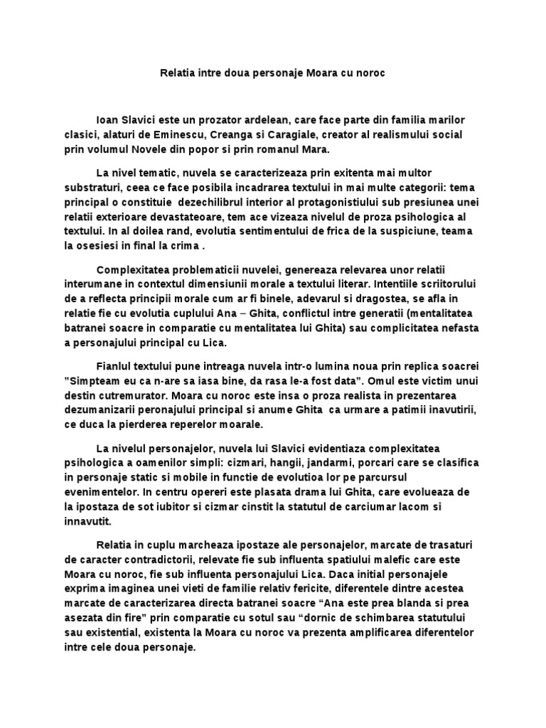 Doc Eseu Relatia Dintre Doua Personaje Moara Cu Noroc Albert Mihai Academia Edu