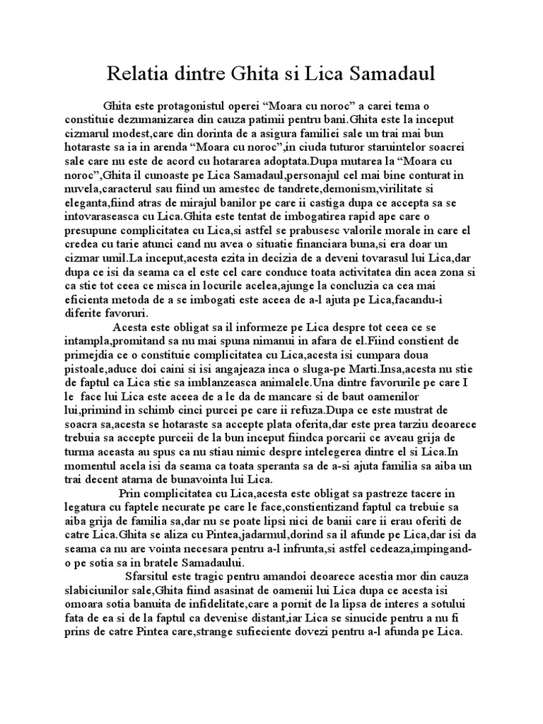Relatia Dintre Ghita Si Lica Samadaul