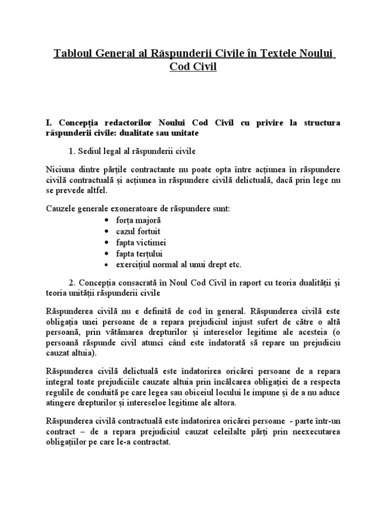 Repararea prejudiciului în cazul răspunderii delictuale răspunderea civilă izvoarele obligațiilor despre obligații codul civil din 2009 prin utilizarea lege5 îți exprimi acordul cu privire la faptul că folosim module cookie în scopul îmbunătățirii conținutului în vederea analizării traficului precum și împotriva utilizării neautorizate. 1 orice prejudiciu dă dreptul la reparație. 1381 1395 secţiunea a vl a capitolul iv titlul ii cartea a v a. 1531 din codul civil creditorul are dreptul la repararea integrală a prejudiciului pe care l a suferit din faptul neexecutării cu alte cuvinte o rice abatere de la principiul forței obligatorii a contractului constituie sub aspectul neexecutării o condiție primară suficientă pentru acordarea de daune interese.