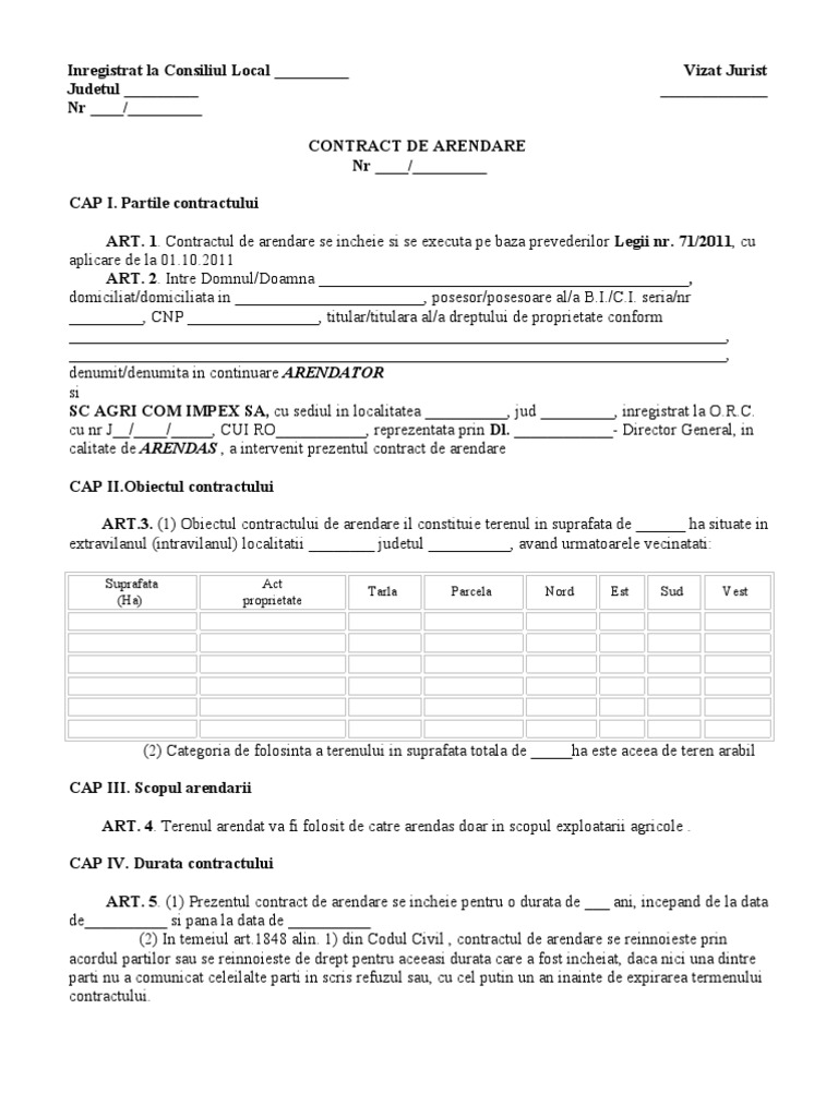 Contract De Arenda