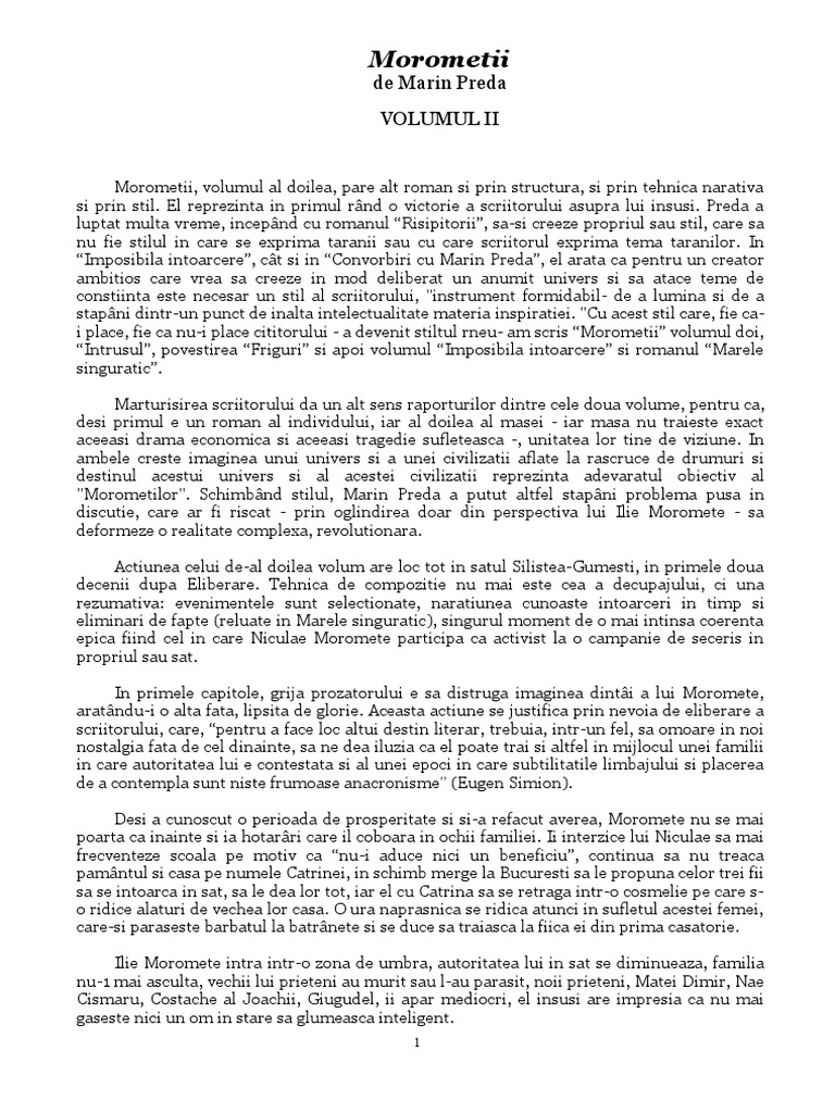 Doc Filehost Marin Preda Morometii Volumul Ii Antoneta Cote Academia Edu
