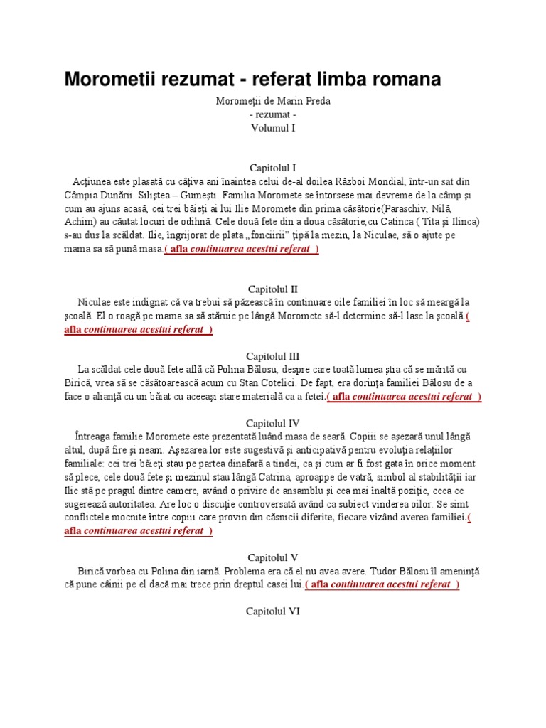 Morometii Rezumat Vol I Si Ii Ro Morometii Coninut Volumul I Prima Parte Romanul Debuteaz Cu Sosirea Familiei Moromete De La Camp Cnd Bieii Fug S Se Course Hero