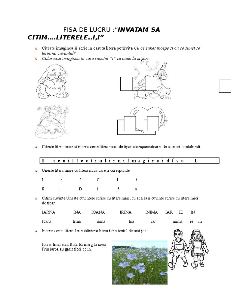 Citim Literele I I Fisa De Lucru Invatam Sa