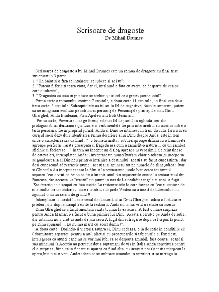 40006367 Rezumat Scrisoare De Dragoste Mihail Drumes