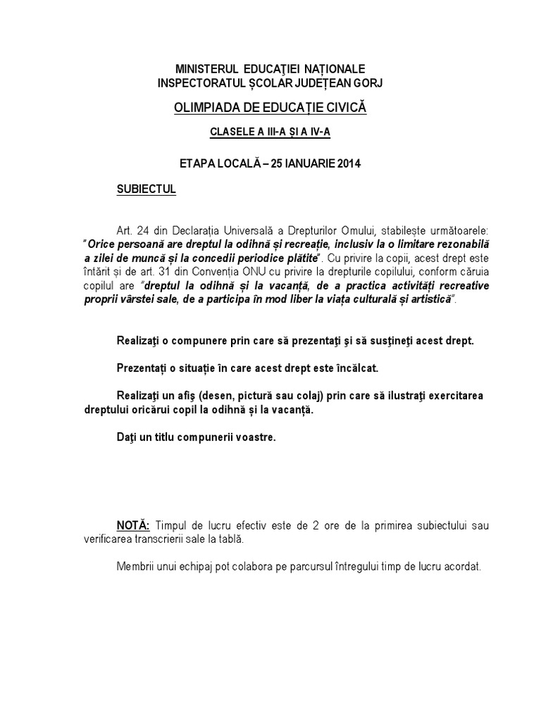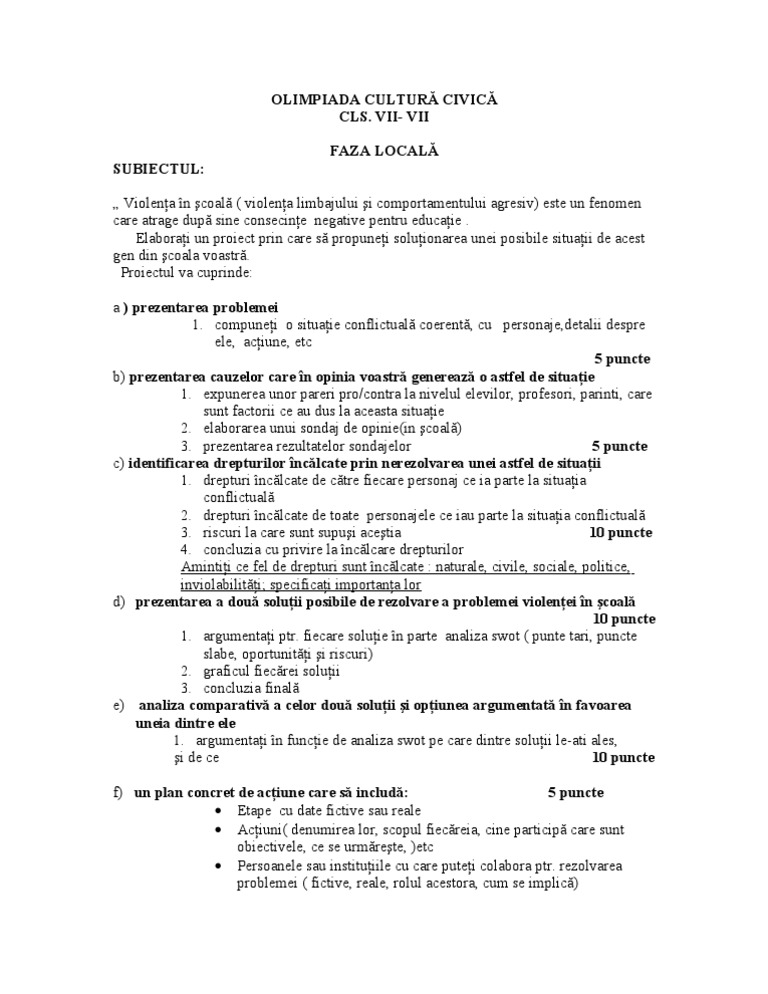Olimpiada De Educatie Civica Faza Locala Subiect Si Barem Mafiadoc Com