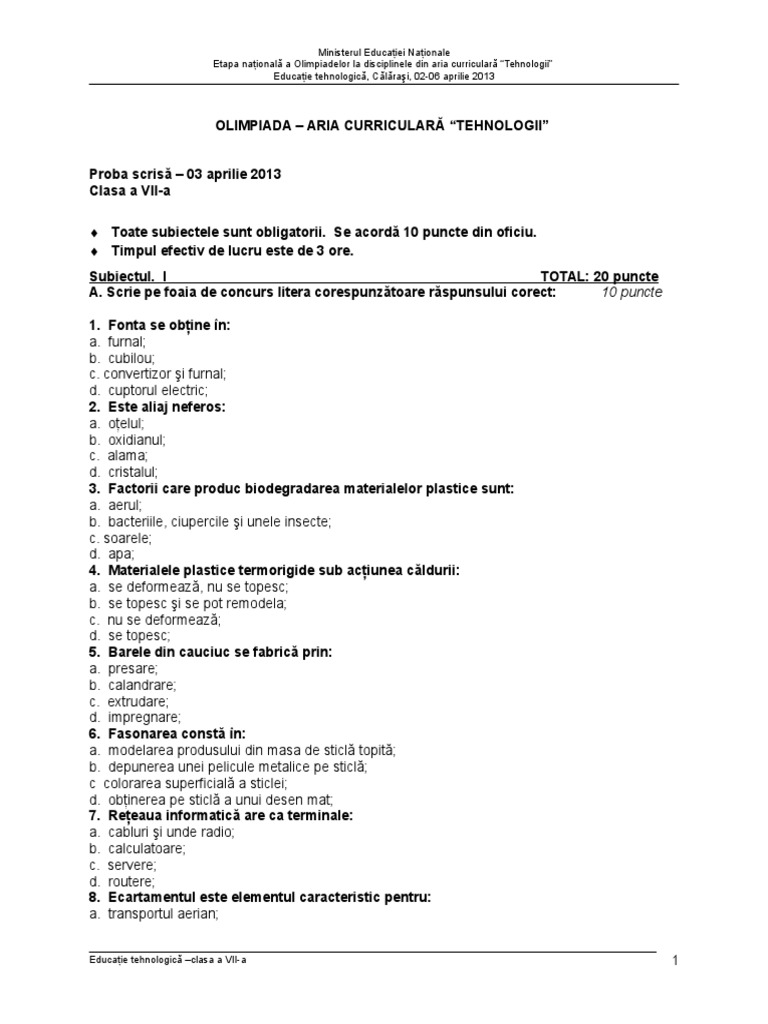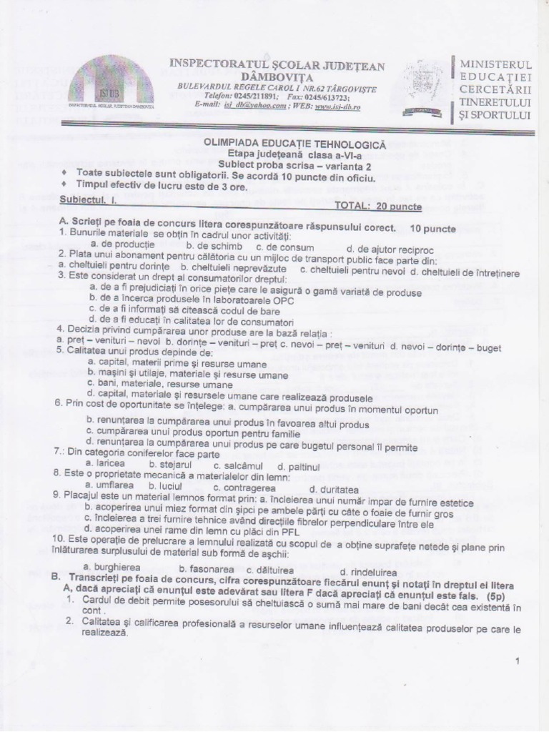 2005 Educatie Tehnologica Judeteana Subiecte Clasa A Vi A 1