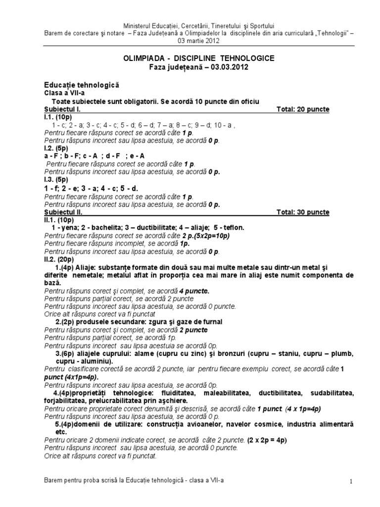 2012 Educatie Tehnologica Etapa Judeteana Barem Clasa A Vii A 0