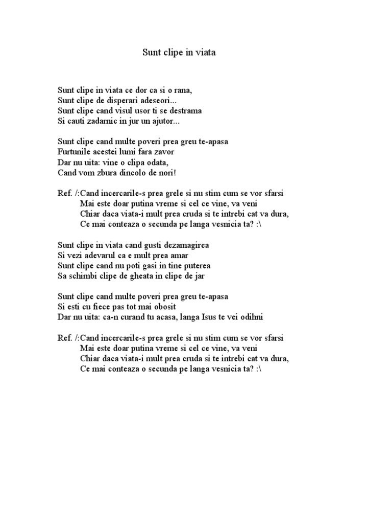 Sunt Clipe In Viata Ce Dor Cu Versuri Chords Chordify