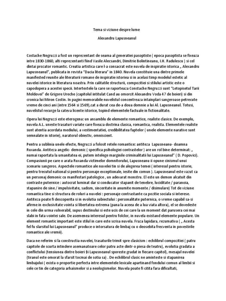 Alexandru Lapusneanul Tema Si Viziunea Despre Lume Docx