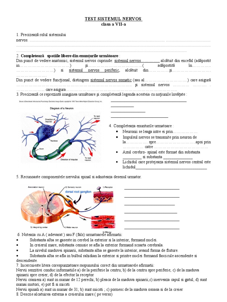 Fisa De Evaluare Sistem Nervos Clasa A Vii A