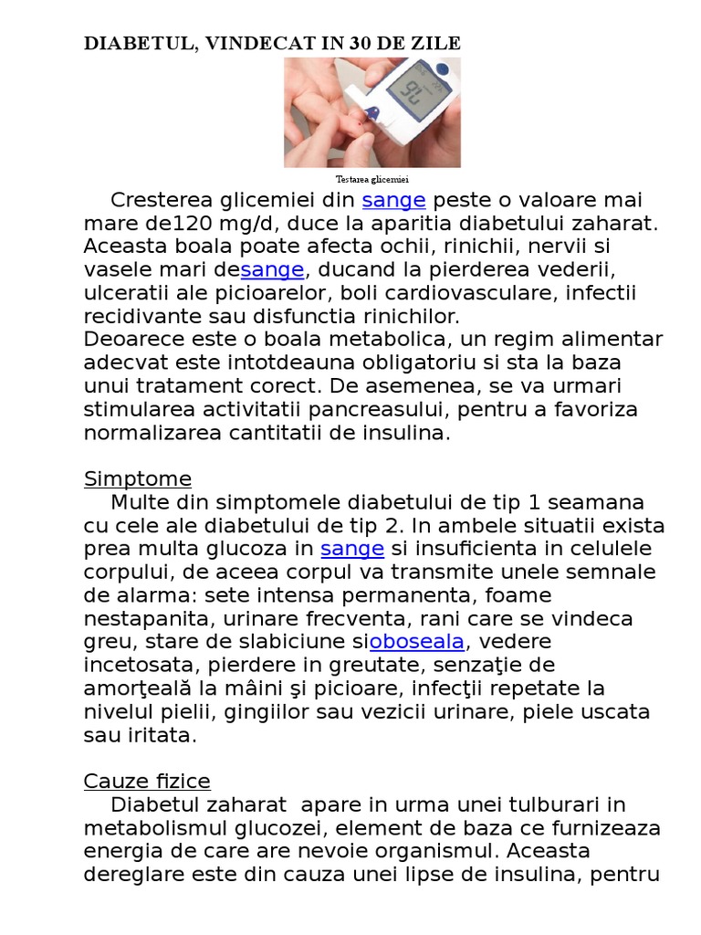 Vindecare Diabet In 30 Zile